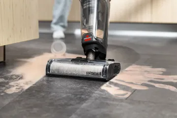 On hard surfaces, water is equally ineffective. “If you move your CrossWave® wet dry vacuum across a hard floor with just water, the water will bead up without wetting and covering the surface,” says Kellis. What’s more, when the water finally dries it will leave behind water spots. When you use a hard floor cleaning formula, the solution goes on in a thin, even coat and spills and debris are easily washed away.