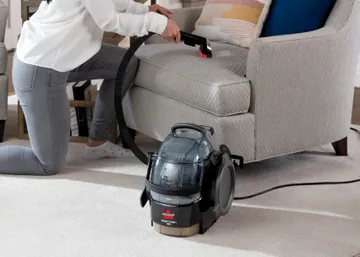 Speaking of couch cleaners, we recommend any of our portable carpet cleaners as a fabric couch cleaner, specifically the ones with attachments. The SpotClean Pro™ Portable Carpet Cleaner is our best seller. It’s also our most powerful portable carpet cleaner because it combines powerful suction, scrubbing action and professional cleaning solution to remove stubborn spots and stains from your couch. All of our portable carpet cleaning machines have their own special formulas, made to do the best cleaning with a smaller machine. The best one for sofa cleaning depends on your spots and stains, but we suggest trying our BISSELL® PET Spot & Stain Carpet Cleaning Formula (32 oz.) or Professional Spot & Stain + Oxy.